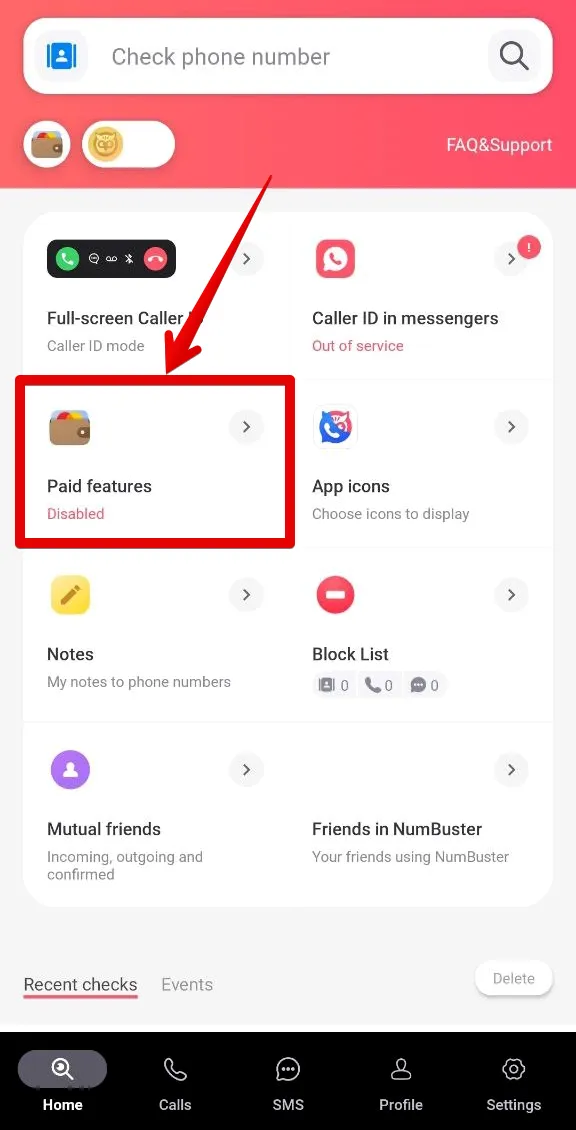 3. Click the Paid Features option (wallet icon).